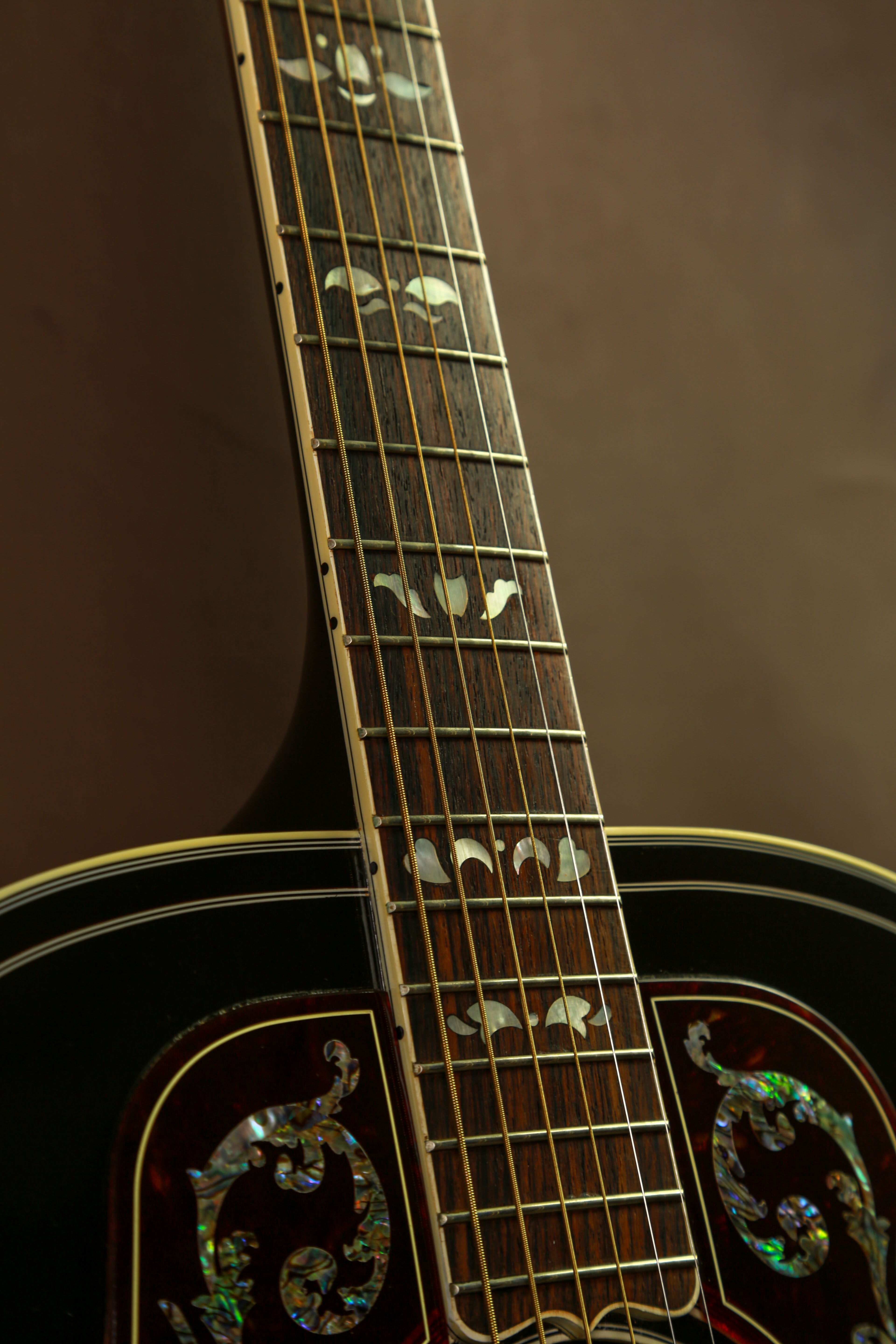 The guitar features top-quality figured rosewood on the back and sides, spruce top, with a maple neck.